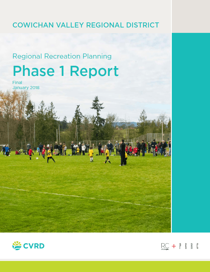 The Cowichan Valley Regional District (CVRD), in partnership with its member municipalities, has undertaken a recreation planning project for the past eight years. The phased approach has involved an initial public engagement and needs assessment (Phase 1), collection of facility user data (Phase 2), exploration of regional funding options (Phase 3) and development of a regional recreation strategy (Phase 4).